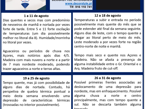 Bom dia a todos os seguidores da METEOMIRA. Chegámos ao oitavo mês de calendário, um mês caracterizado para muitos portugueses como um mês de férias, de praia, de...