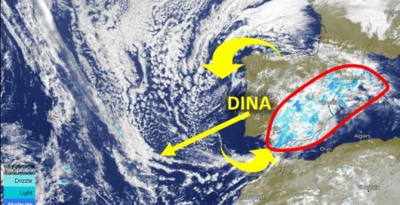 É verdade, são típicas da precipitação e estão a aparecer aos poucos… e a primeira será essa até final do mês no Arquipélago muito possivelmente, trazendo aguaceiros, possibilidade de trovoadas e está representada na imagem abaixo, na zona da seta a preto: