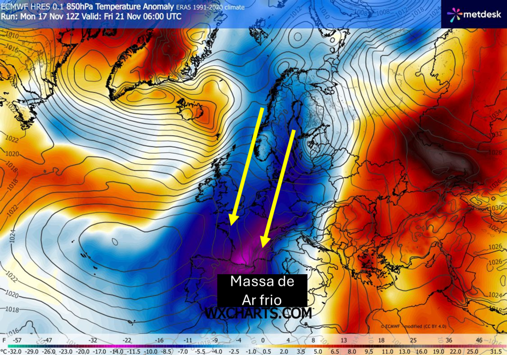 A sua deslocação abriu caminho à descida de uma massa de ar polar que trará a primeira verdadeira sensação do General Inverno fresquinho à nossa latitude, o que é natural para a época do ano.