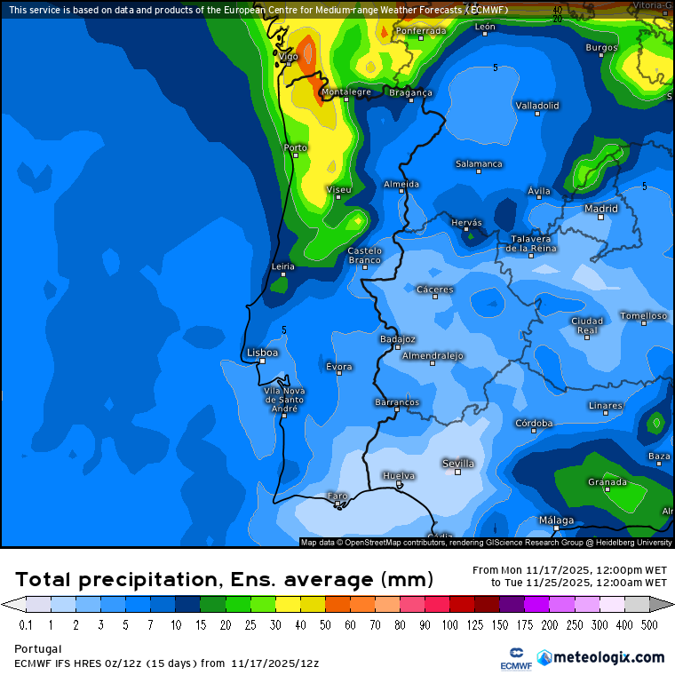 Tempo Frio em Portugal Continental: 18 a 22 de novembro 2025
