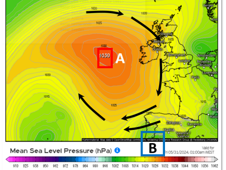 Rio Atmosférico a norte e centro a marcar o final da instabilidade. A Lua vai virar a 7 e o tempo também vai estabilizar a partir da noite...